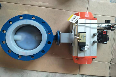 氣動(dòng)襯氟蝶閥是用隨閥桿一起轉動(dòng)的蝶板作啟閉件,用以實(shí)現閥門(mén)的開(kāi)啟、關(guān)閉與調節。另外,蝶閥還有體積小、重量輕、結構簡(jiǎn)單等優(yōu)點(diǎn),與同參數閘閥比較,平均減輕重量達30~50%,蝶板旋轉90°即可實(shí)現啟、閉過(guò)程,又由于轉軸兩側蝶板受介質(zhì)作用力近似相等,轉矩相反,因此啟閉力矩較小。