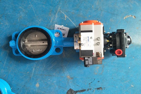 1、將蝶閥的四個(gè)定位孔和法蘭的安裝孔對準,確認都在統一圓心上。