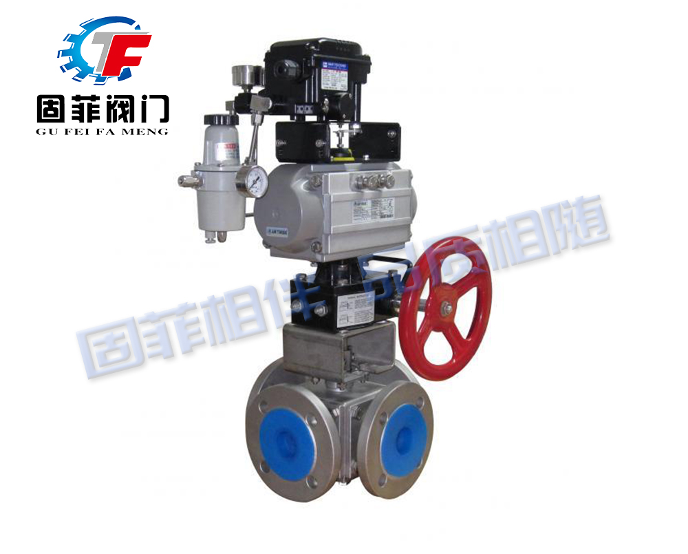 氣動(dòng)四通球閥密閉在各類(lèi)管路系統種用于截斷或接通介質(zhì)流,使介質(zhì)按照預定的程序輸送到各個(gè)指定點(diǎn)。氣動(dòng)四通球閥采用角行程氣動(dòng)執行器及四通球閥組成,可配以閥門(mén)定位器輸入控制信號(4-20mADC或1-5VDC)氣源即可控制運轉。亦可配行程限位開(kāi)關(guān)、電磁閥、三聯(lián)件及0.4-0.7MPa氣源可實(shí)現開(kāi)關(guān)操作,并送出二對無(wú)源觸點(diǎn)信號指示閥門(mén)的開(kāi)關(guān)。